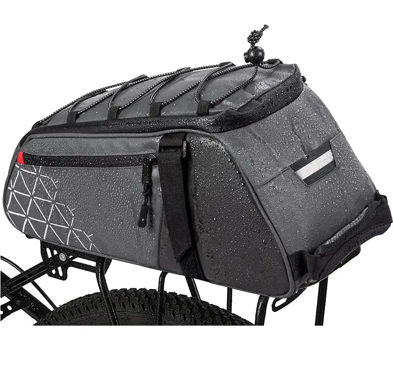 This rear bike bag has exceeded my expectations. It’s incredibly lightweight, which makes it perfect for not adding extra weight while riding. It's very practical and versatile, as it not only mounts perfectly on the rear rack of the bike but also can be used as a hands-free bag, making it super convenient to carry around when I'm off the bike.